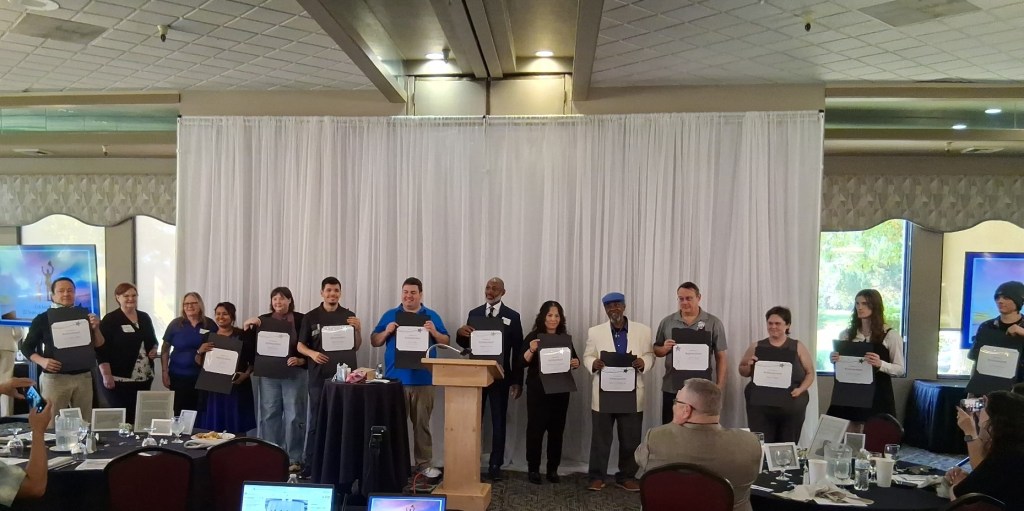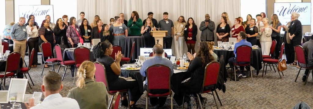 On October 23rd, 2025, Dreamcatchers held their 10th annual Client Success Recognition luncheon in honor of National Disability Employment Awareness Month to celebrate participants that have become hired. Dreamcatchers also celebrated 25 years of service delivery! This year’s theme was “Portraits of Success,” with many written testimonies of current and past participants framed and displayed on the tables at the venue. Many participants also shared aloud their testimonies of how employment has changed their lives. The event was a huge success, with more than 120 attendees including participants of services, their family members, employers, community partners, donors, Dreamcatchers’ Board of Directors and staff, and state and county officials.